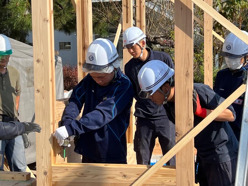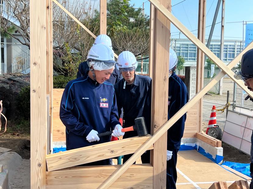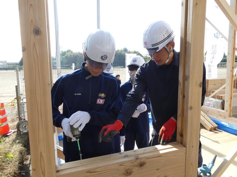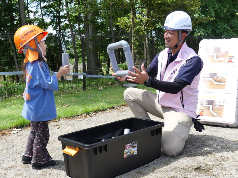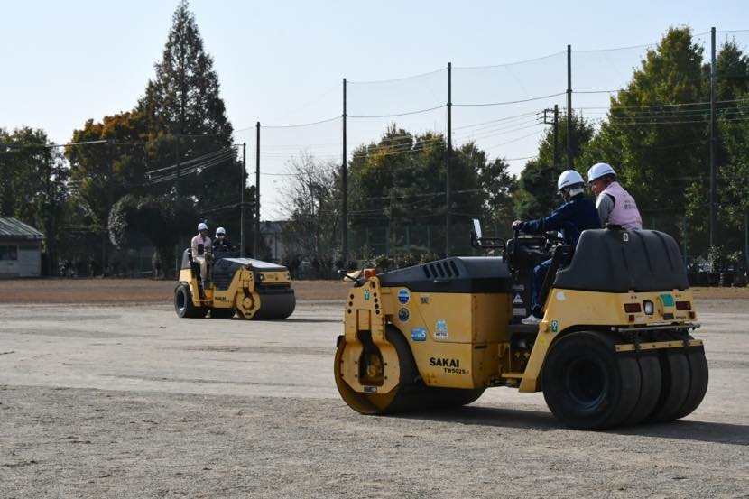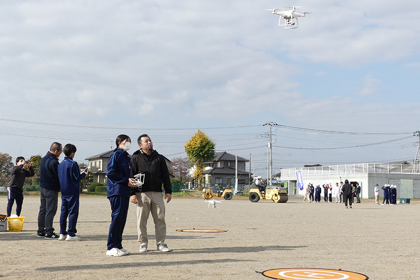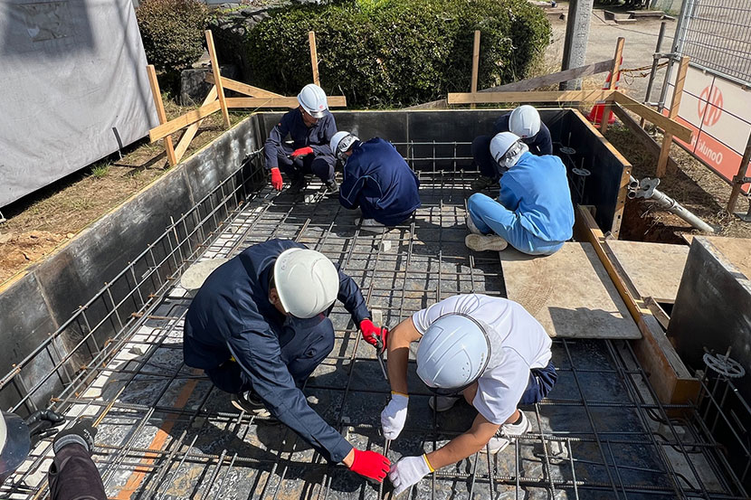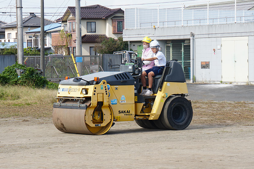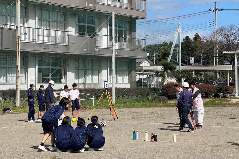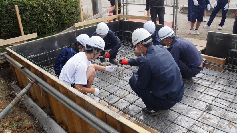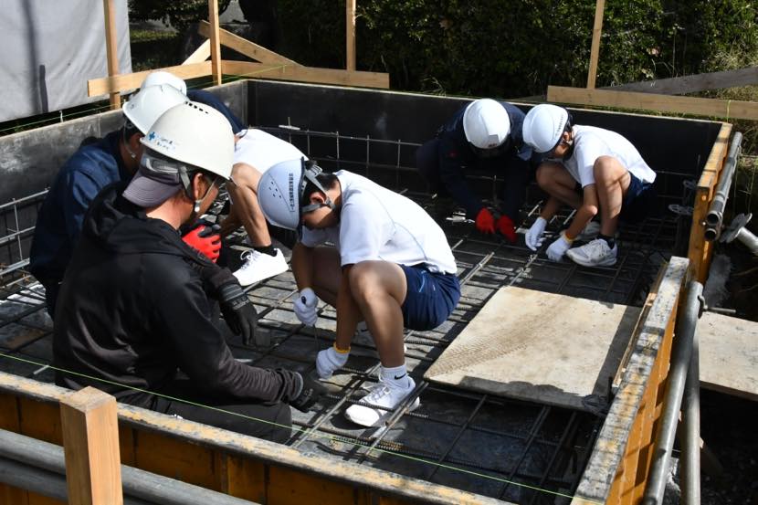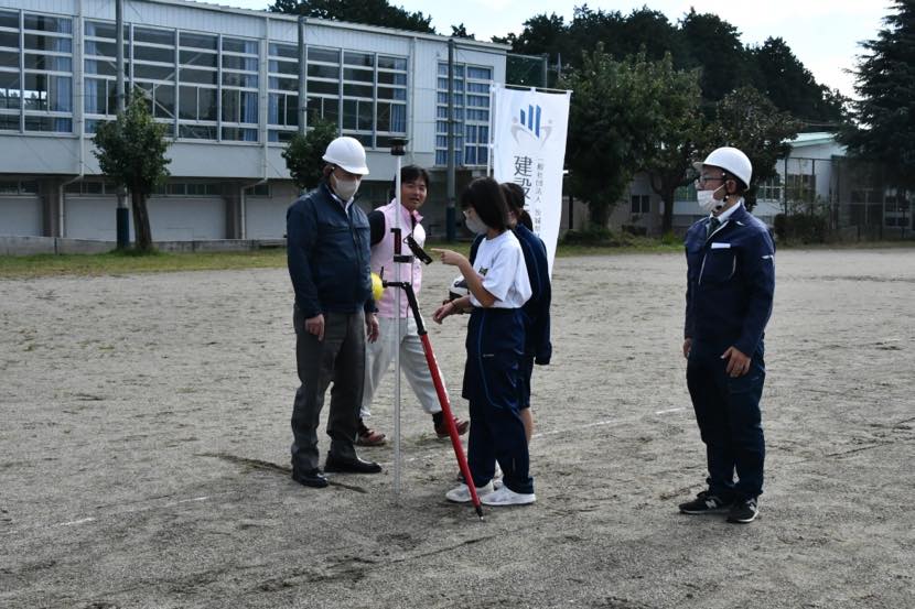 建設事業への親近感を深め、将来の職業選択の糧となるよう、生徒たちが普段利用する学校施設の建設作業や測量作業を楽しみながら体験できる場を提供しています。なお、この活動は(一社)関東地域づくり協会の支援により実施しております。