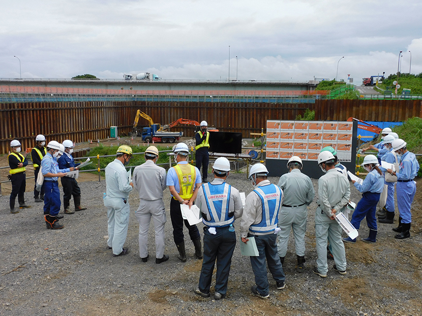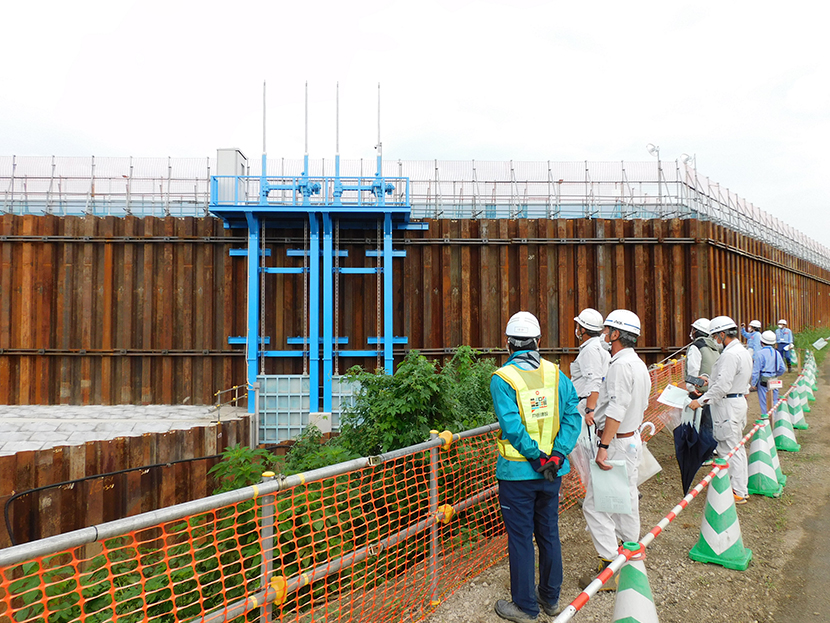 本会は7月26日(火)、国土交通省関東地方整備局とともに荒川上流河川事務所管内「入間川右岸古谷樋管改築工事」(埼玉県川越市)の現場において、「鋼矢板二重式仮締切」の現地見学会を開催しました。