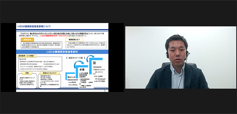 本会は、茨城県健康推進課(業務委託先:株式会社常陽産業研究所)との共催により、令和5年9月20日(水)、健康経営オンラインセミナーを開催しました。