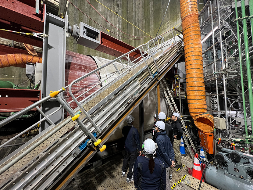 見学会では、霞ヶ浦導水事業における事業概要や進捗状況などについて説明を受けたのち、立坑内部や施設内設備などの見学をおこないました。