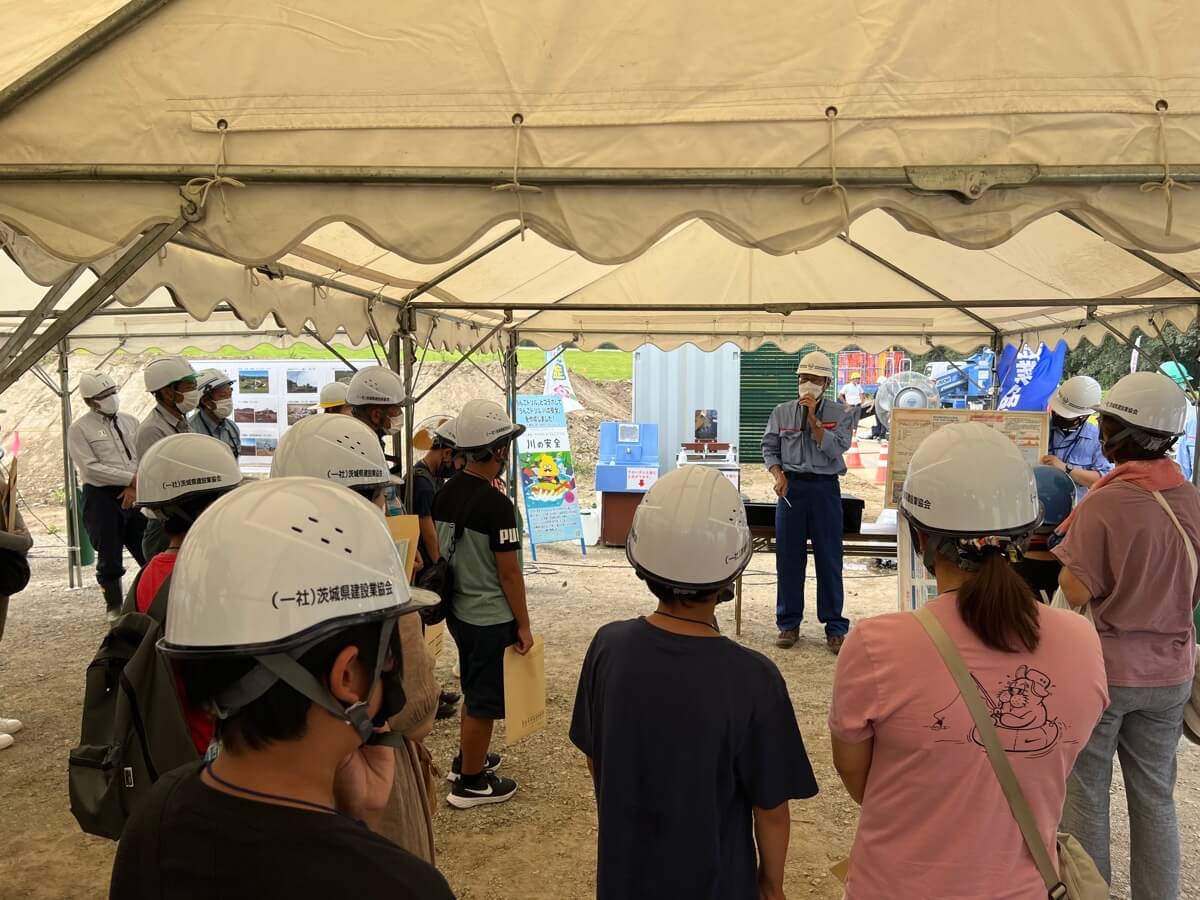 本会は令和4年8月23日(火)、「那珂川緊急治水対策プロジェクト 大場遊水地整備工事」の現場において、「夏休み建設業親子見学会2022」を開催しました。