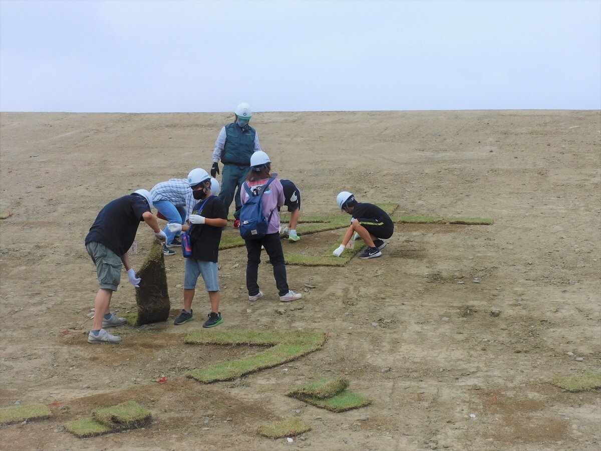 築堤ヤードでは張芝体験や重機搭乗体験を行いました。
