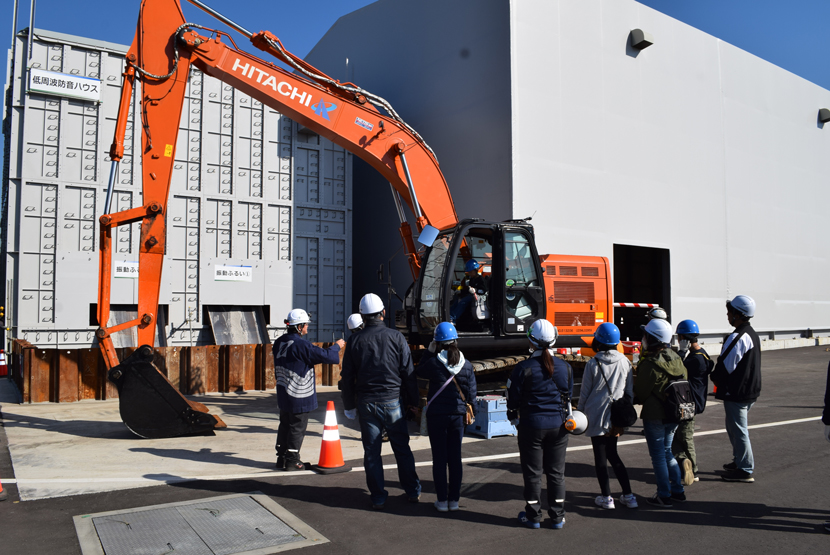工事概要などの説明後、班に分かれてトンネル内見学、坑内用バイク試乗体験、実機ショベル試乗体験、バーチャルショベル運転体験、ドローン飛行体験も実施しました。