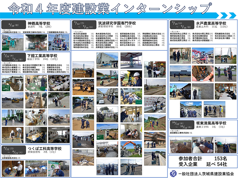 本会は、若年層の入職促進を目的に、県内の高校生、専門学校生などを対象とした、建設業インターンシップを実施しました。令和4年6月から10月にかけて行いました。