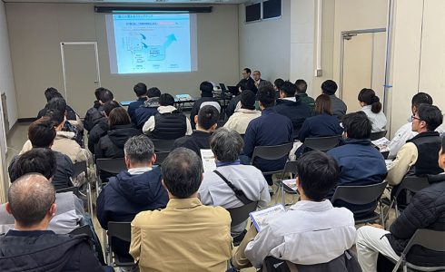 研修会では、金杉建設株式会社 工事管理本部 部長・インフラDX推進部 室長 小俣 陽平 氏が『建設DXに向けた社内体制づくり』を解説。
