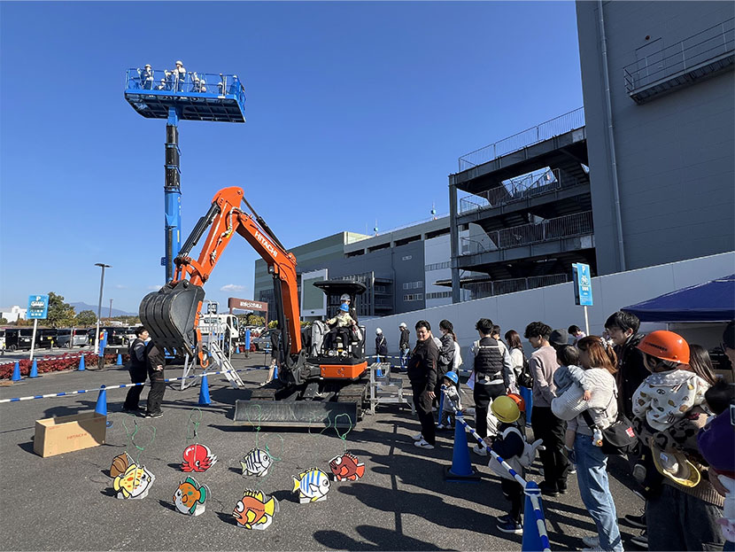 幅広い世代に建設業をより身近に感じてもらうことを目的として、高所作業車搭乗体験、建設機械操縦体験を行いました。